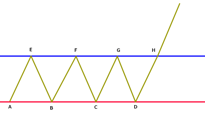 - サポートラインを守り、レジスタンス突破を期待している買い手ABCD