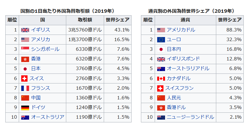 外国為替市場は桁が違うのがおわかり頂けると思います。