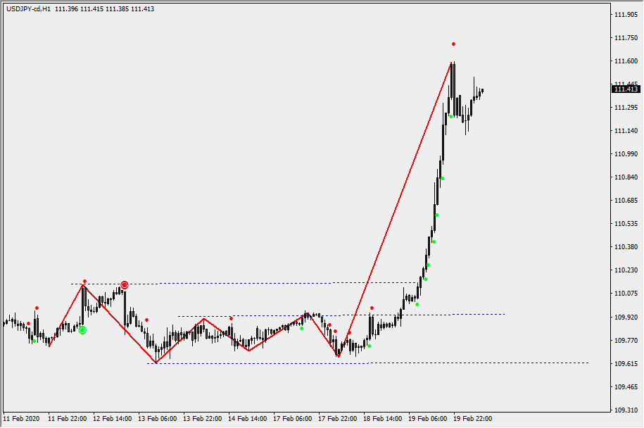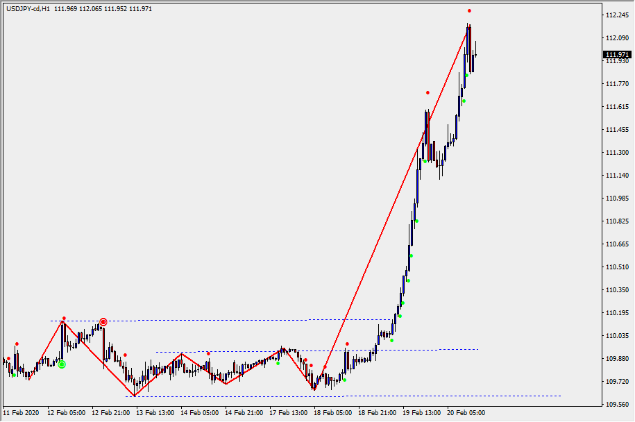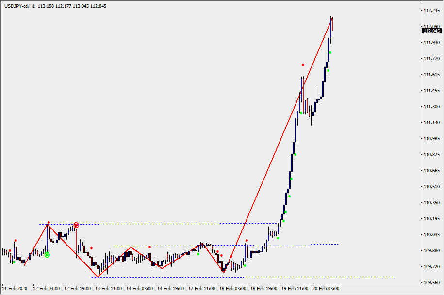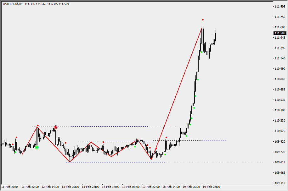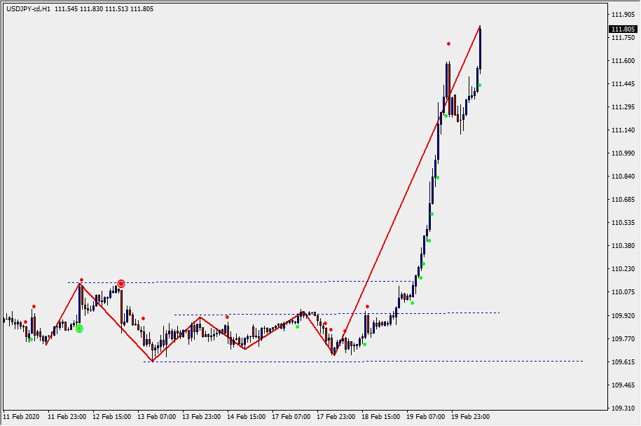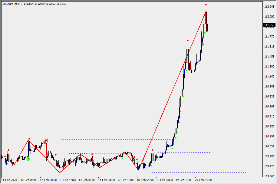 直近では109円~110円の非常に狭いレンジだったが、前日の2月19日に大きく上にブレイク。