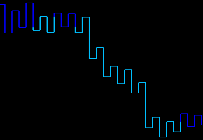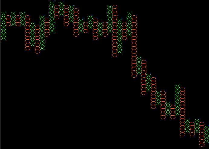 知らない人が見たら、何かのゲームかと思うかもしれませんが、以外にチャートパターンが見えやすかったり、ブレイクアウトのポイントが分かりやすいメリットもあります。