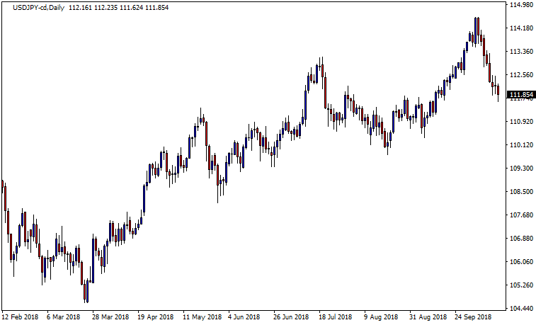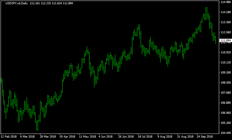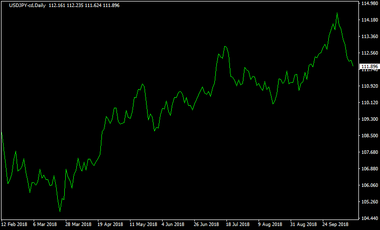 ラインチャートは、その日の終値のみをチャートのプロットして、それらを繋いだシンプルなチャートです。