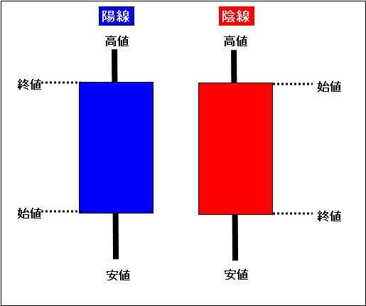 このサイトでは、チャートを表示するときはローソク足チャートを使っていきます。