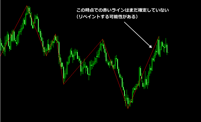 Zigzagは相場の波を読むのは便利だし客観性も高いけど、リペイントする事だってある。万能じゃないけど、参考になるのは間違いないね。