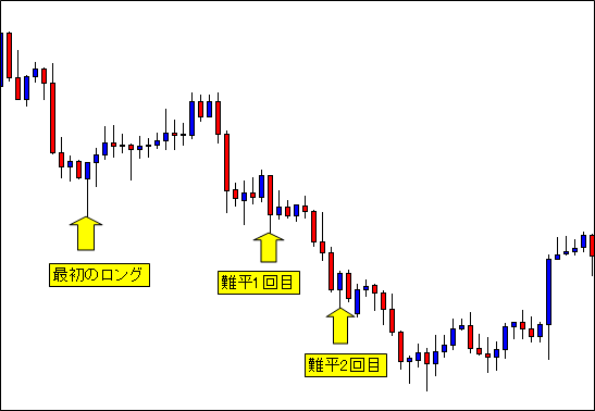 これはその名の通り、倍ロットでナンピンを仕掛けていくやり方です。
