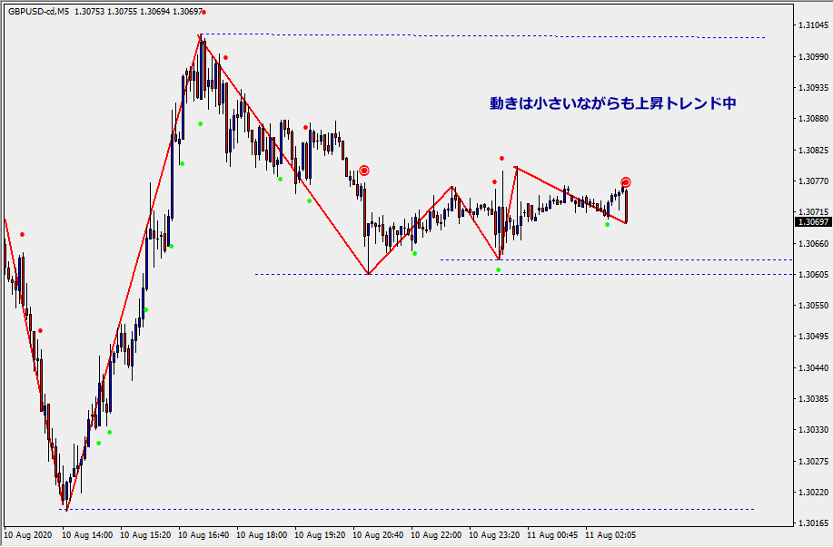 ドットも点灯して良い感じだったのでロングエントリーです。