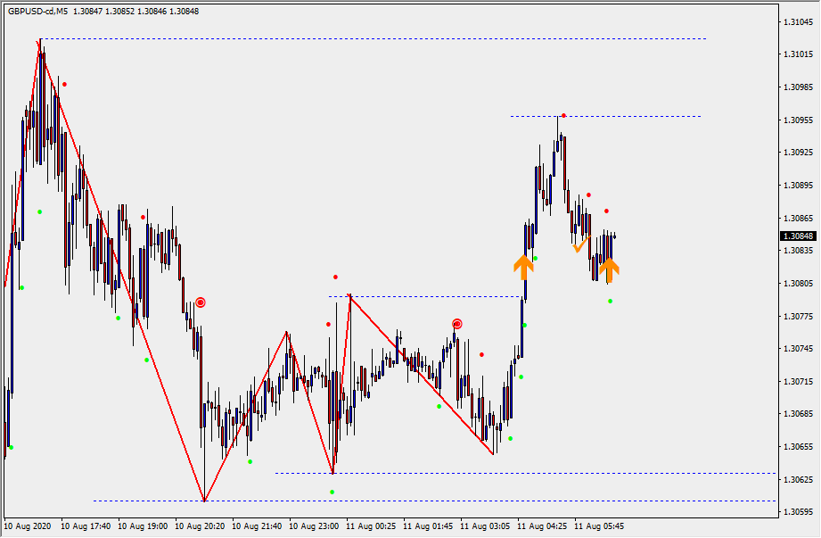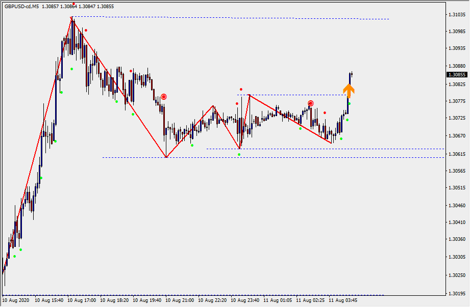 ローソク足のドットもしっかり点灯してブレイクしています。
