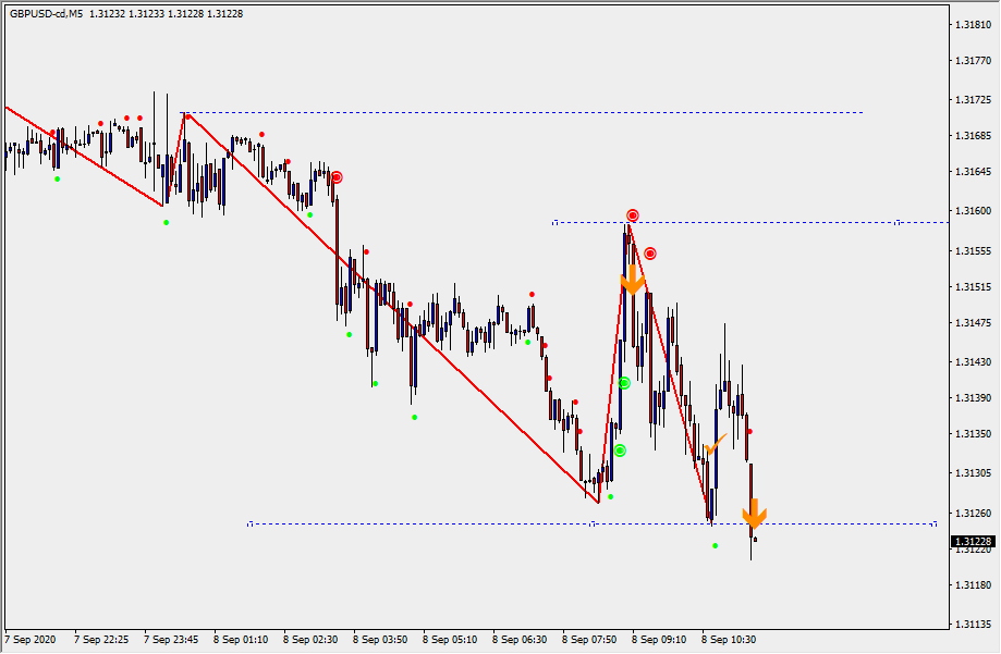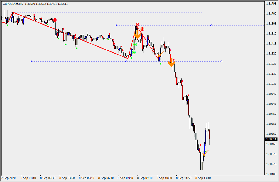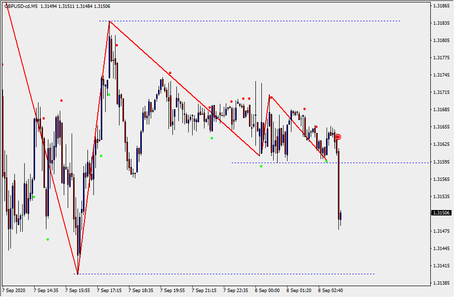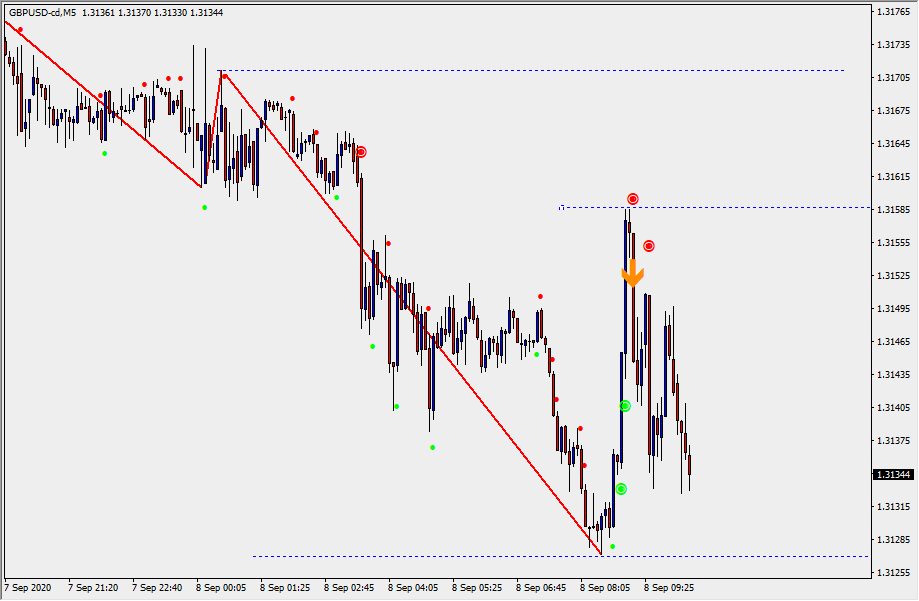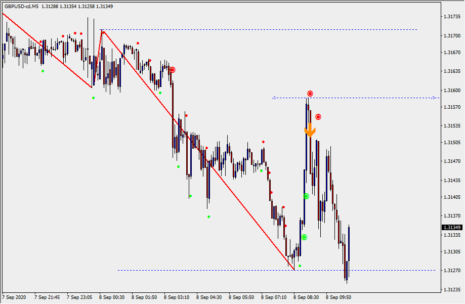 戻しの勢いはありましたが、5分足ではまだまだ下降トレンド。