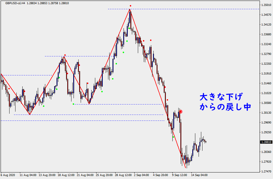 先週に大きく下げたポンドドルも今週に入ってから戻してきています。