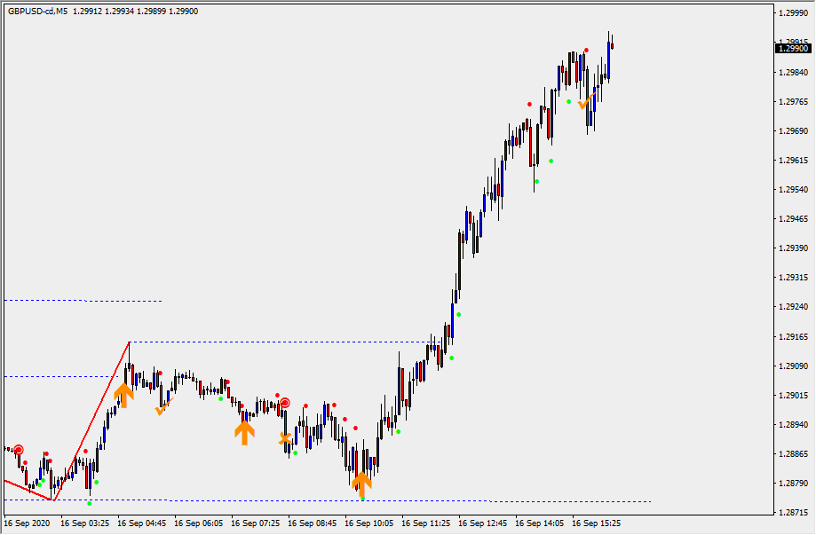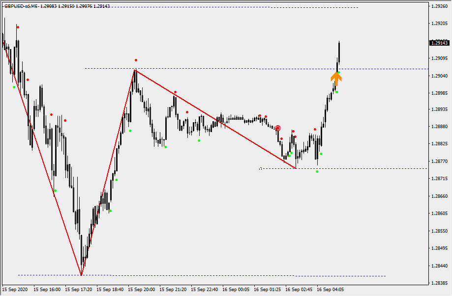 5分足でも上昇トレンド入りしたのでロングエントリーです。