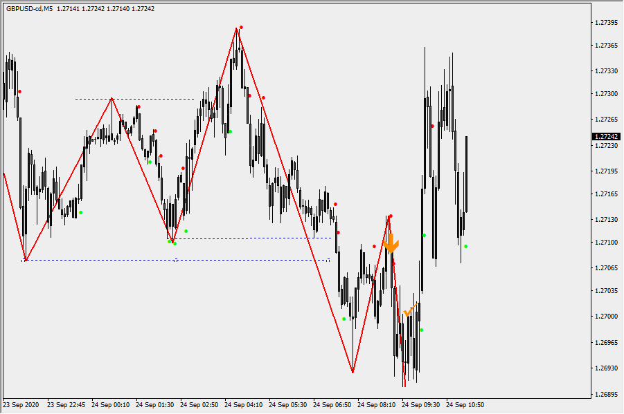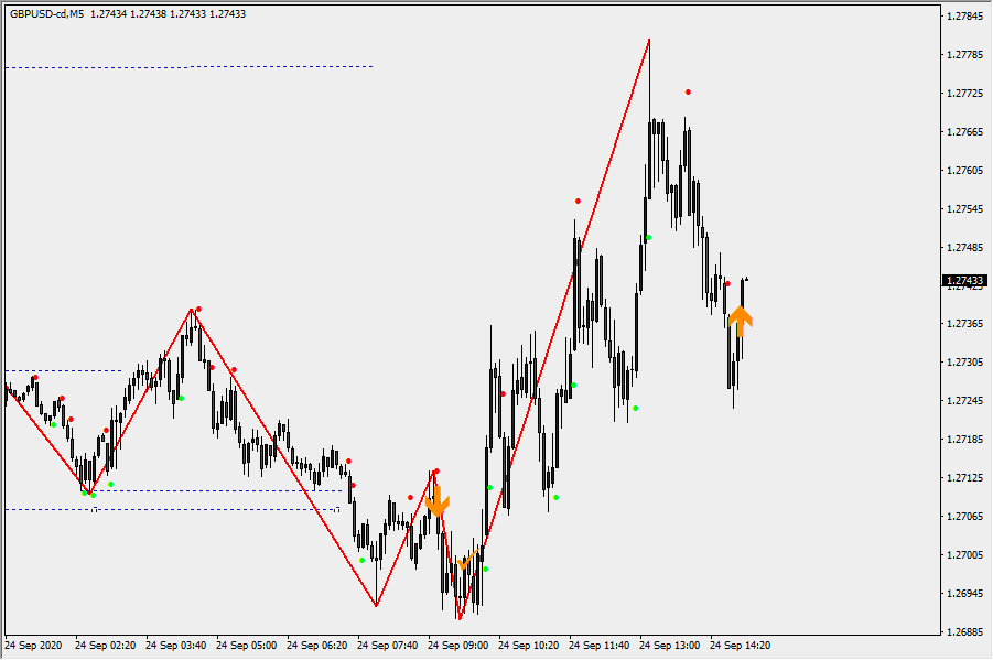 それから更に上昇が続き、5分足の下降トレンドも終了しました。