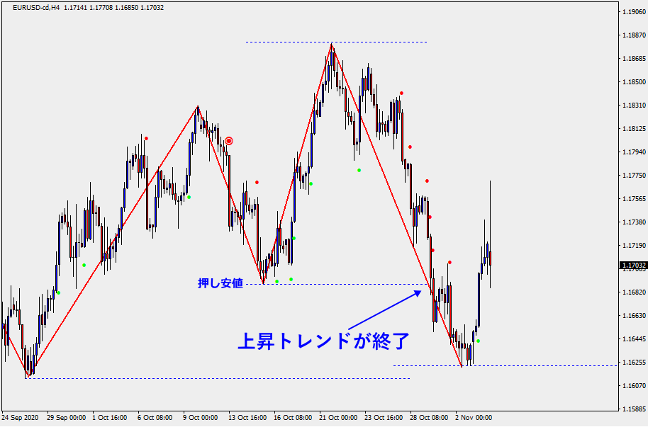 - 4時間足:ノントレンド、相場が上下に荒れている