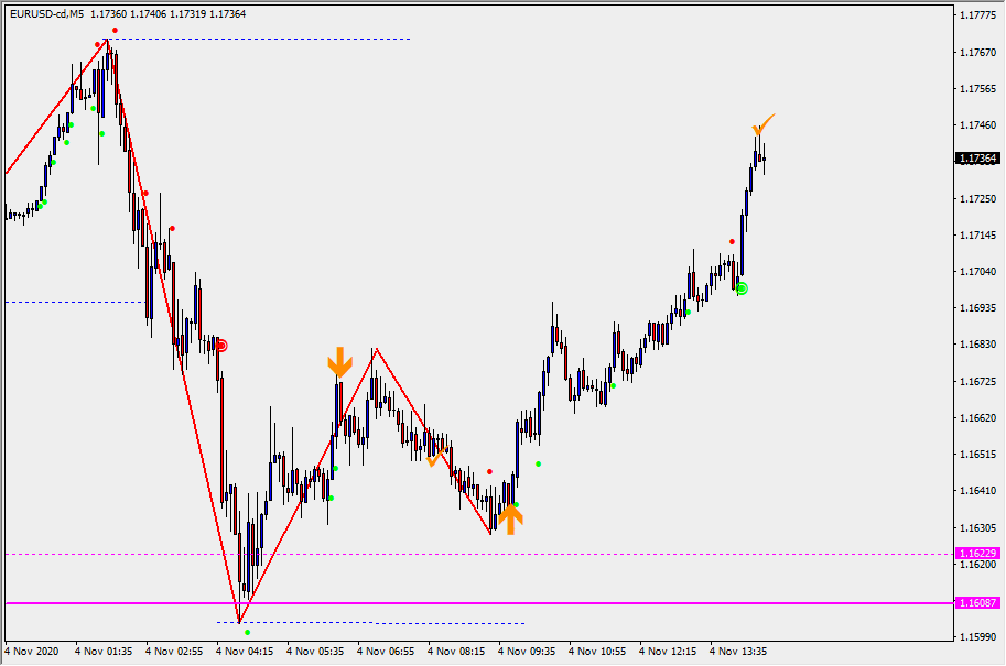 というわけで今回は大統領選挙開票中で相場が上下する中でのトレードです。