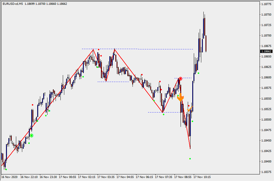 「今日は下げだ!」という考えでしたが、損切り後はドカンと上げて、1時間足レベルで上昇トレンド入りしました。