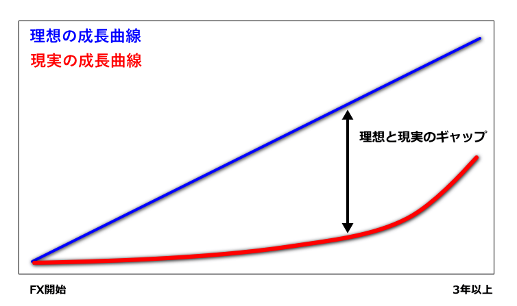 理想の成長曲線を思い描いている人が半年から1年くらいのトレード歴になると、現実と理想のギャップに愕然とします。