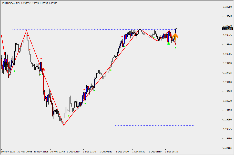そして反発してドットの伴う足が出たので押し目買いのエントリーをしました。