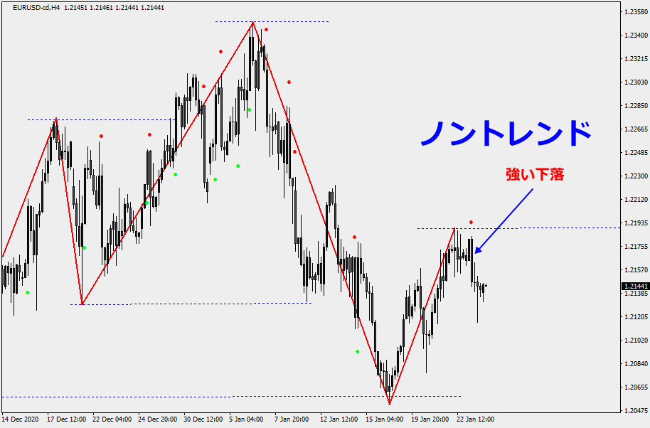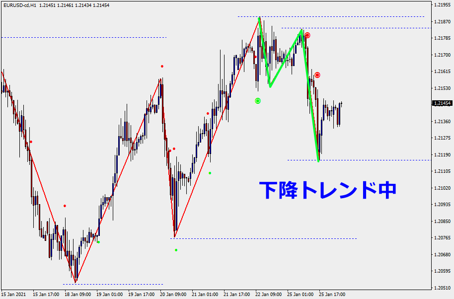 下降トレンド中なので安値をブレイクするかも・・・と考えていました。
