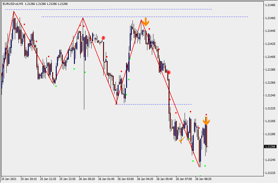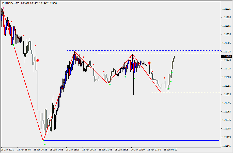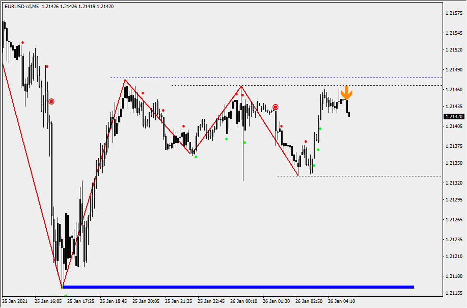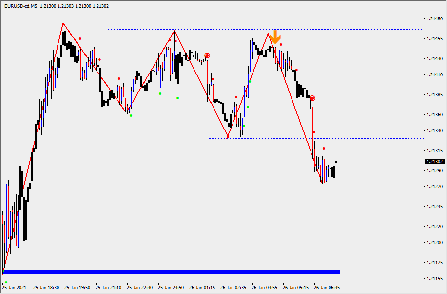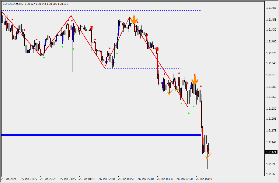 やはり1時間足レベルのサポレジは、5分足レベルでブレイクしたように見えてもすぐに戻ってくることが多いですね。