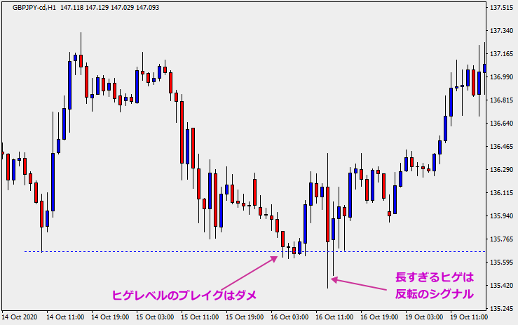 ヒゲレベルのブレイクはダメ