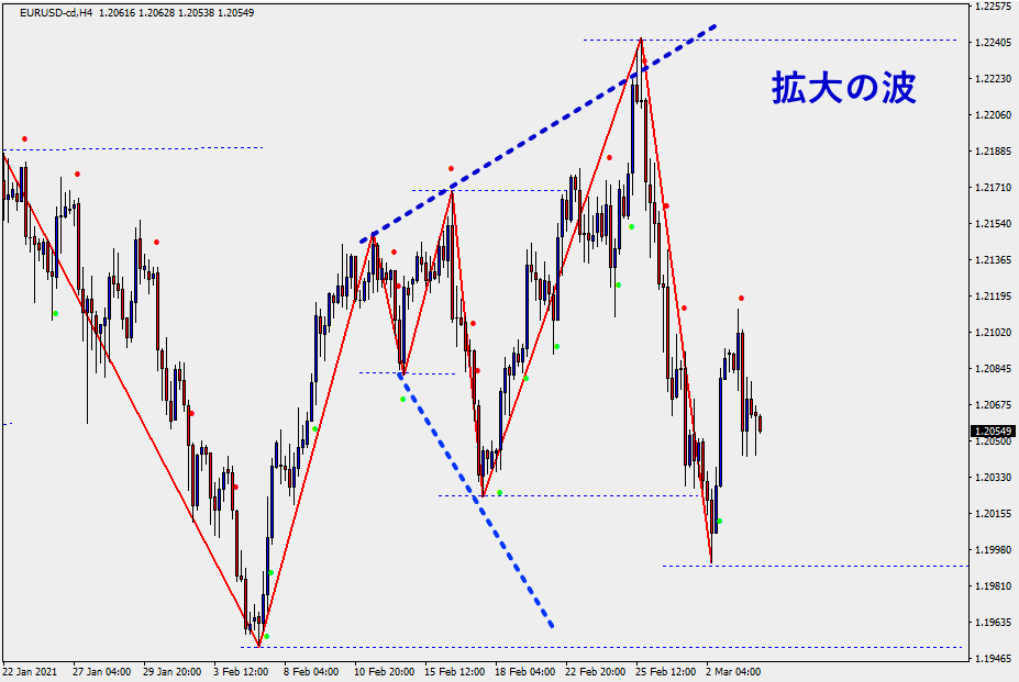 1時間足で下げており、4時間足でも波が荒れながらも下向きの波にあることから、ショートが狙いやすいかなと考えていました。