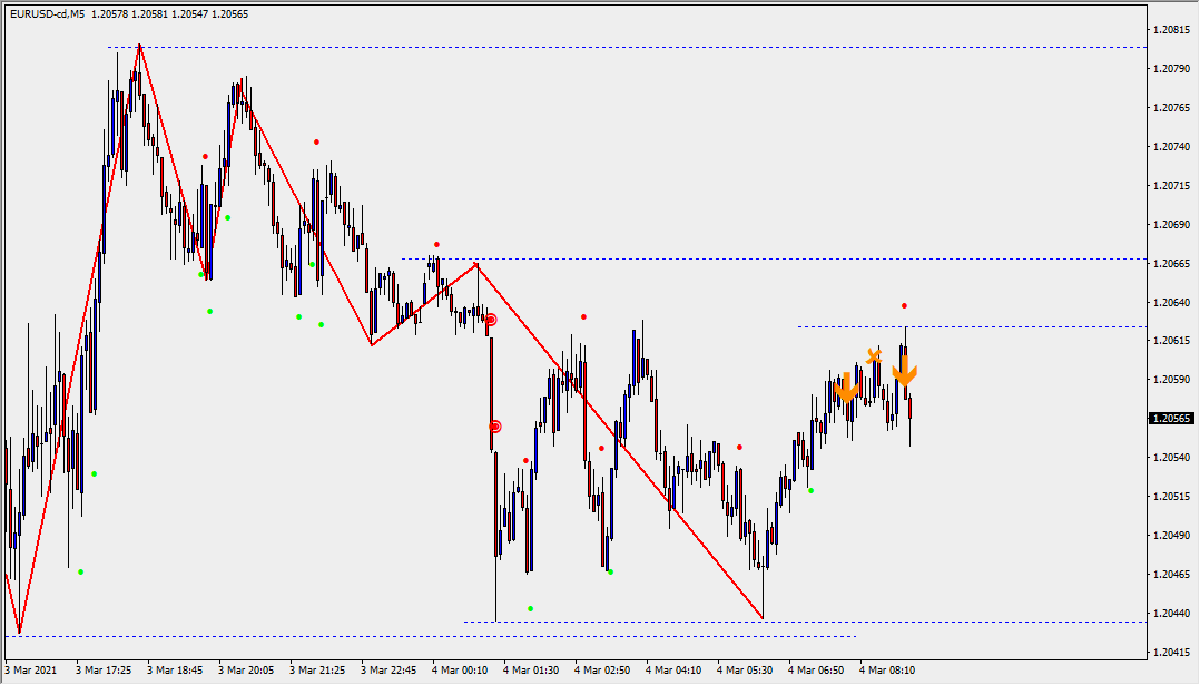 2回目の利食い後にもっと下げてから戻してきたところでショートです。