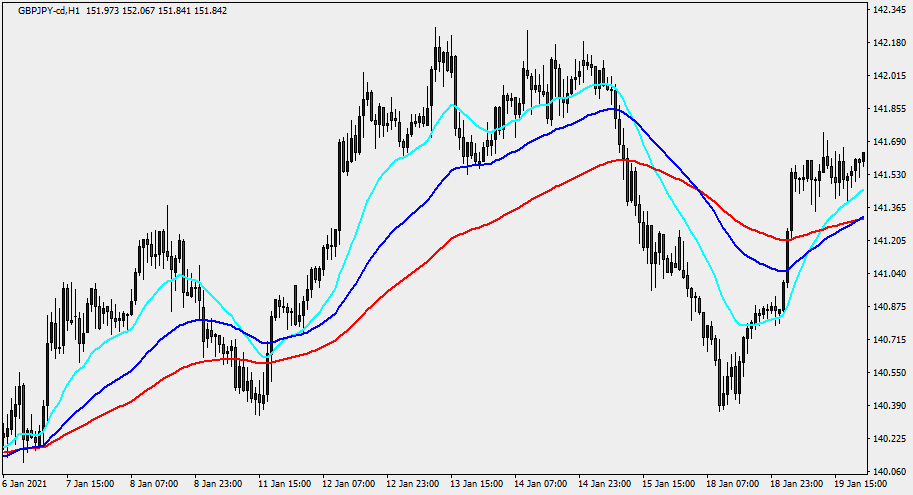 この他にもGMMAのように12本のEMAを表示するものなど、様々な組み合わせがあります。