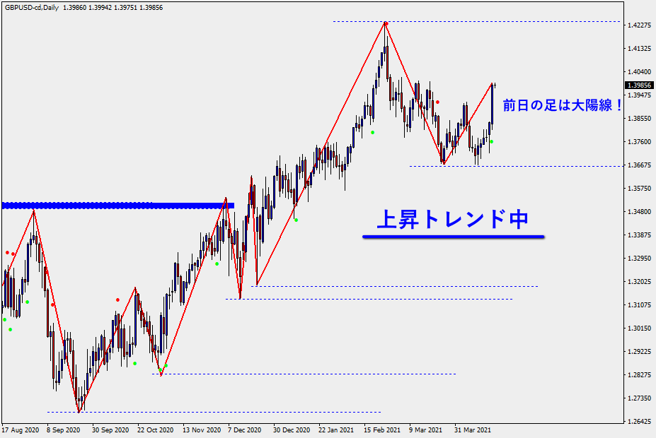 しかも前日は大陽線が確定していて、上昇の勢いを感じさせる!