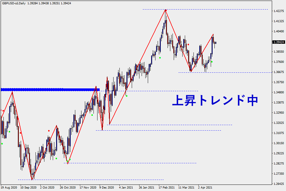 以上から、上げてきたら積極的にトレンドフォローするつもりでした。