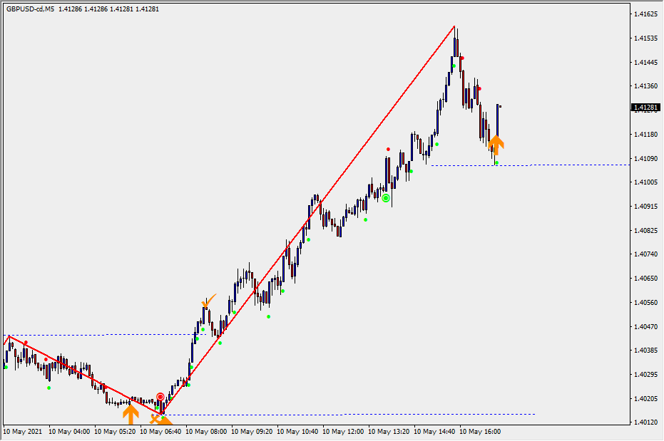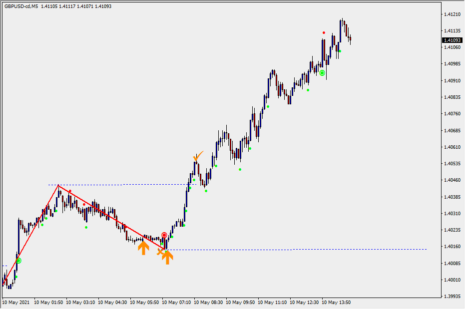 上位足の方向は全部上げなので、5分足でも上げていれば積極的に入る戦略でした。