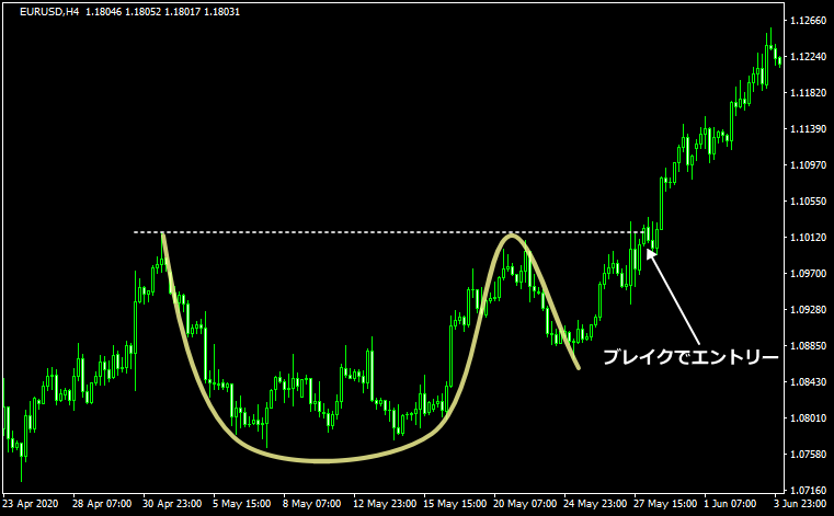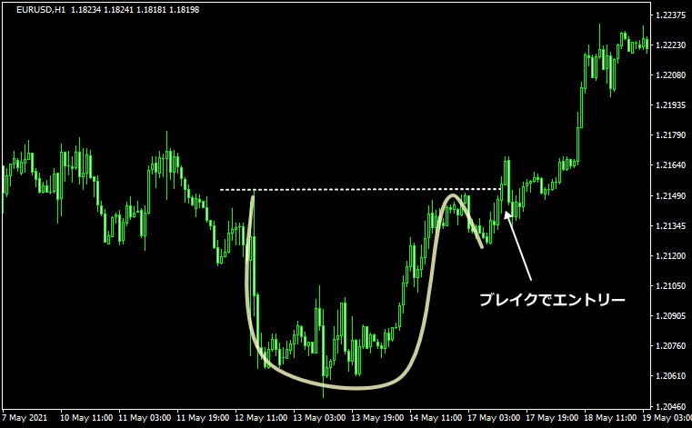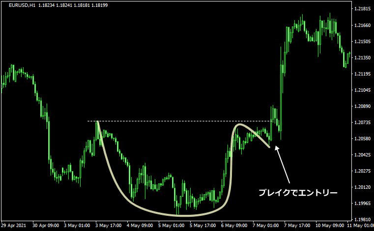 カップ&ハンドルはトレンドフォローのブレイクアウトを狙う戦略になります。