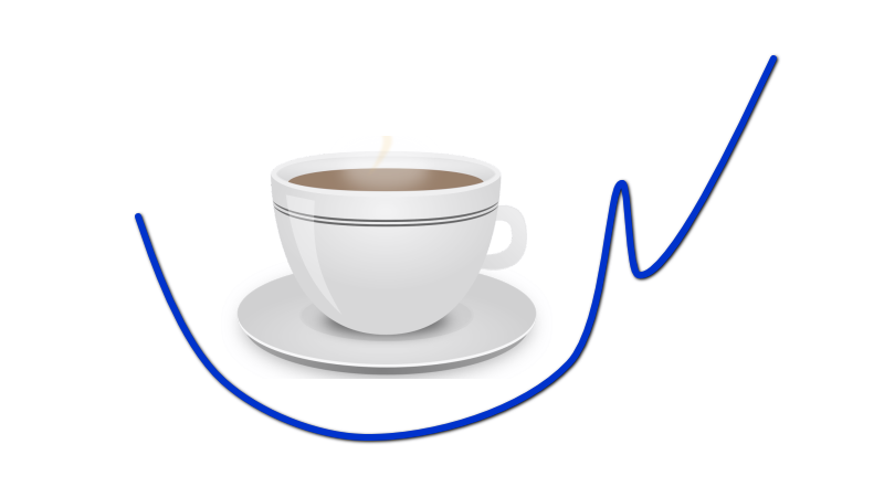 名前の通りコーヒーカップと取っ手のような形をしたチャートパターンで、少し主観性が強いためマニアックになりますが、どの通貨ペア・時間足でも観察できる優位性のあるパターンになります。
