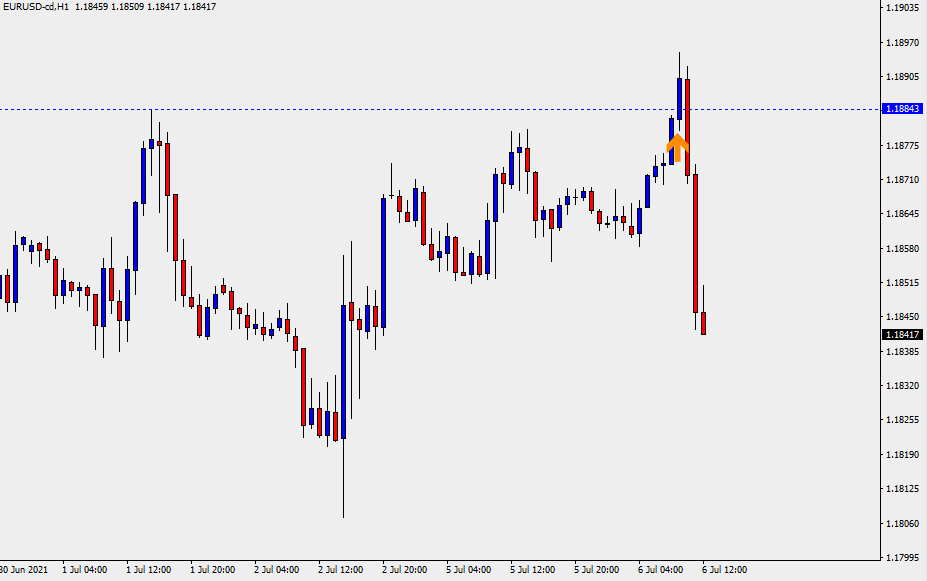 勢いよくラインをブレイクしすぎると、ショートを持っていた人たちがすぐに諦めてポジションを投げ出すことがあります。このような場合はラインまでレートが戻ってきませんので、エントリー出来ません。
