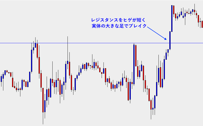 ラインをブレイクする時にローソク足にはヒゲが無い