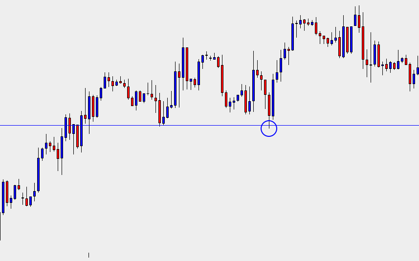 それほど大きくない陰線の下ヒゲの場合、次の足で下抜けていくことも良くありますが、上のチャートのように下ヒゲが目立った陰線となると、一時的な反転を示唆することも良くあります。