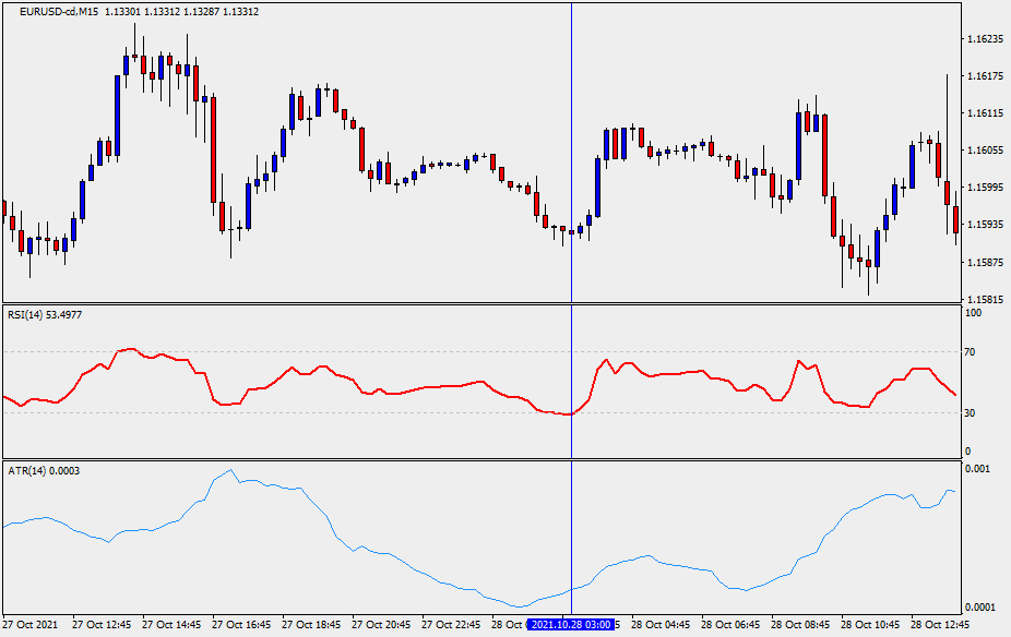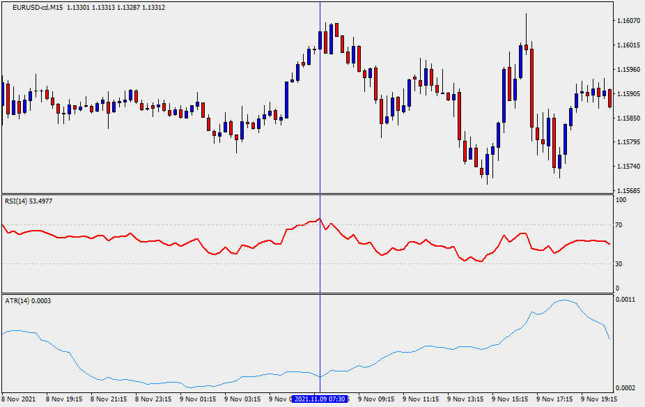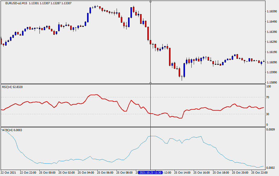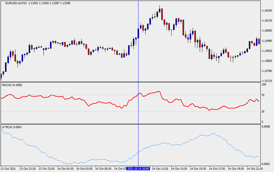 まず、このチャートを見てください。(赤いオシレーターがRSI、青いオシレーターがATR)