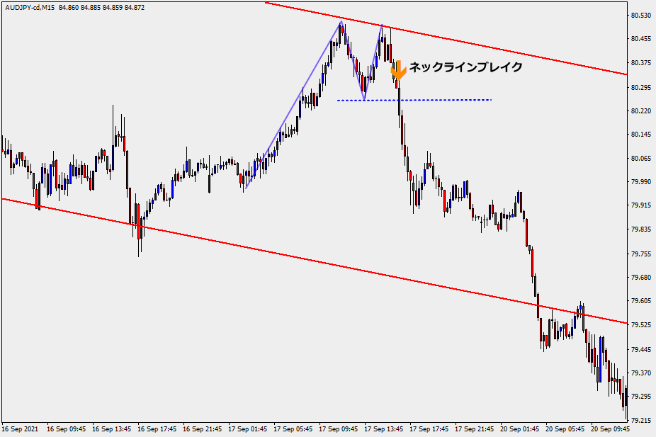 チャネルラインの中のアウトラインはブレイクされやすいのが特徴です。