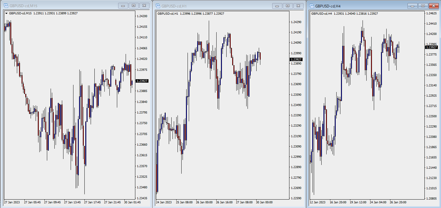 同じ価格推移を示したとはいえ、時間軸によってチャートの値動きは全く違ってきます。