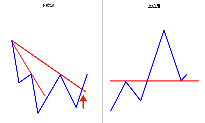 1本目に引くトレンドラインは、上昇トレンドであれば必ず高値と安値を更新する必要があります。