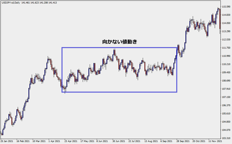 うねり取りではボラティリティがあって、大きく上下の波を描く値動きが必要です。