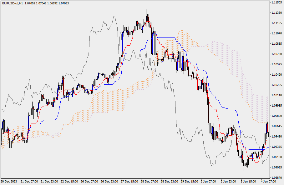 - 転換線に対して基準線が下抜けたら上昇トレンドの始まり(下降トレンドの終わり)