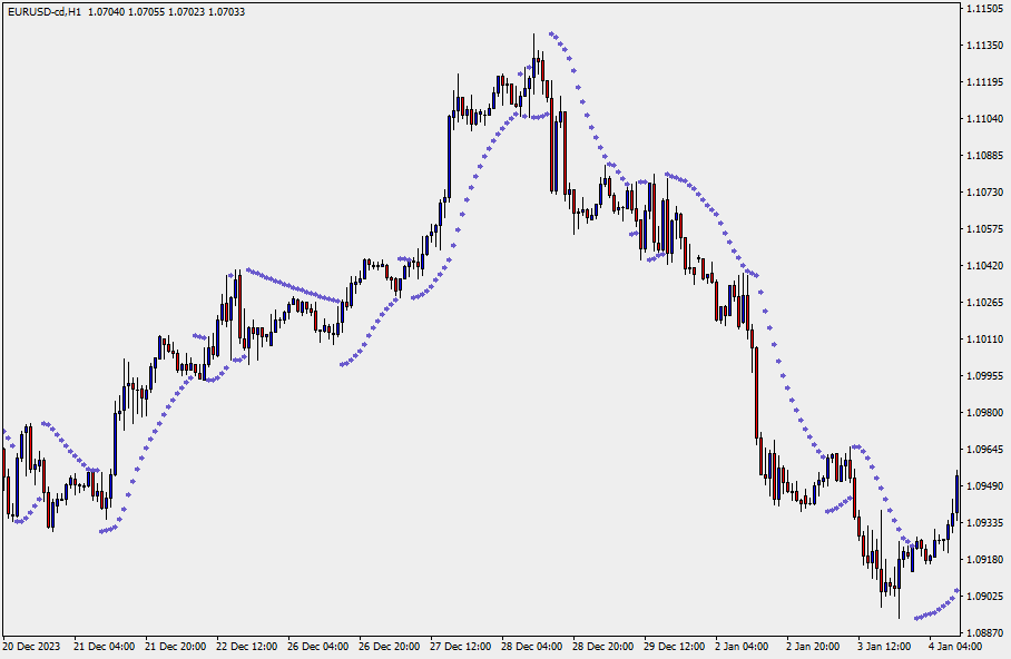 - 上昇トレンドのときはパラボリックがローソク足の下に表示される