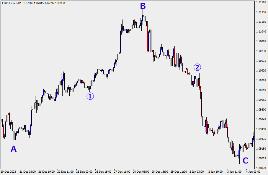 A-Bは上昇トレンド、B-Cは下降トレンドが発生しています。