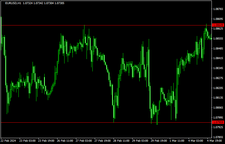 レンジ相場を見つけたら、そのレンジの高値と安値にラインを引きます。